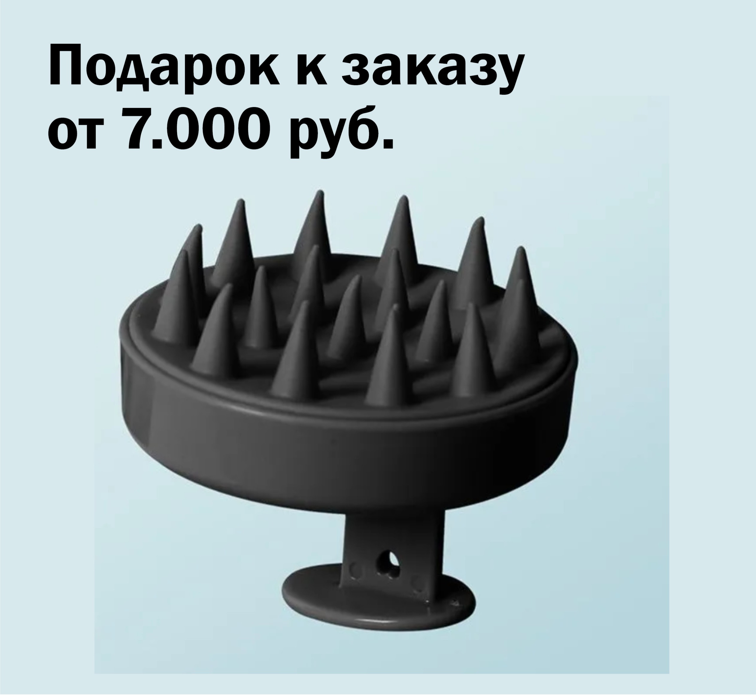 Массажёр для мытья волос и головы – идеальный подарок при заказе от 7000 рублей! Обеспечивает глубокий массаж кожи головы, улучшает кровообращение, укрепляет корни волос, способствует их росту и предотвращает выпадение. Удобная форма позволяет легко очищать волосы без напряжения рук и шеи. Идеальный выбор для заботы о здоровье ваших волос!